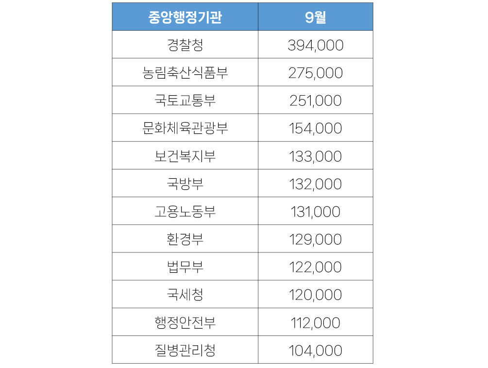 구독자 분석 - 중앙행정기관