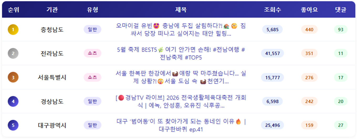 최근에는 지자체 유튜브나 인스타그램에 게재된 영상에 관심이 집중되는 모습을 자주 보게 됩니다. 지방 시대를 맞아 지방자치단체 중 광역자치단체의 유튜브을 모니터링 합니다. 지자체에서 제작하는 영상이 중앙행정기관과 어떤 차이를 보이는지 함께 살펴보겠습니다.